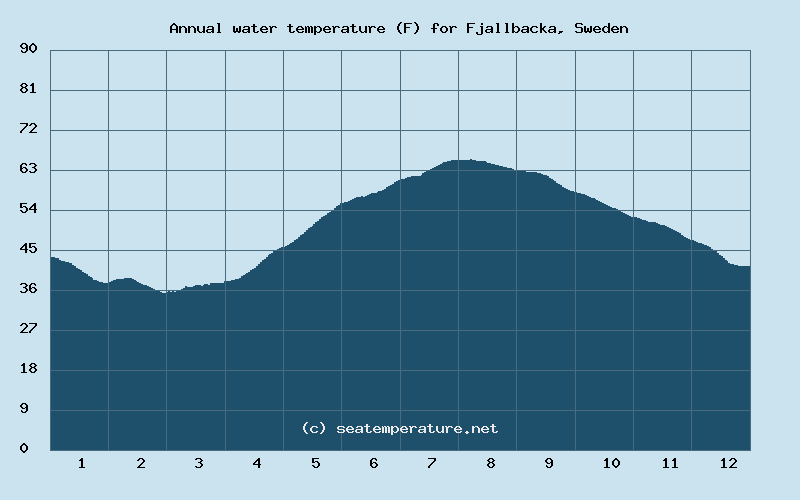 It cannot be guaranteed that the water temperature in Fjallbacka will be comfortable for swimming in any month of the year.