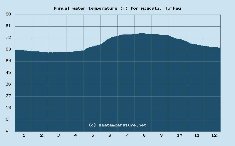 You can explore detailed data on how the water temperature in Alacati varies each month: