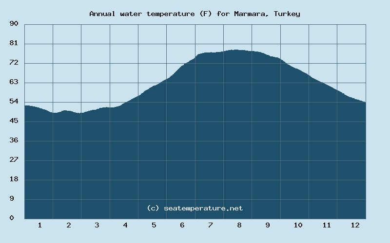 You can explore detailed data on how the water temperature in Marmara varies each month: