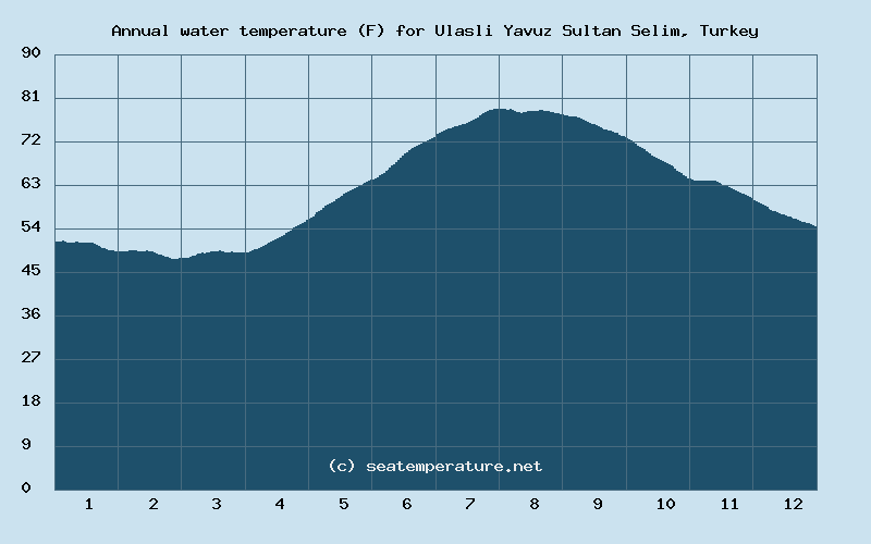 You can explore detailed data on how the water temperature in Ulasli Yavuz Sultan Selim varies each month: