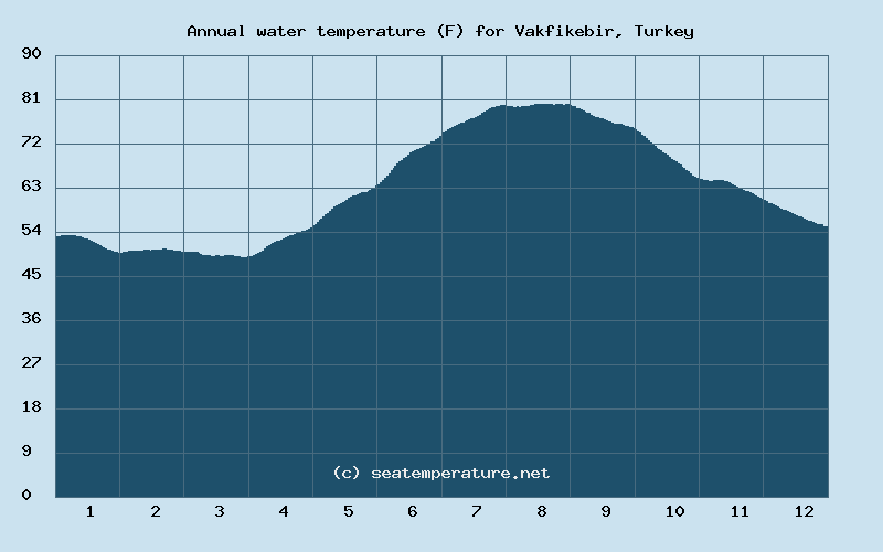 You can explore detailed data on how the water temperature in Vakfikebir varies each month: