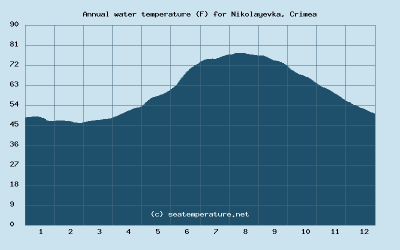 You can explore detailed data on how the water temperature in Nikolayevka varies each month: