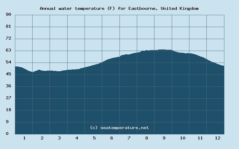 Throughout the year, the sea temperature in Eastbourne never exceeds 64°F (18°C).