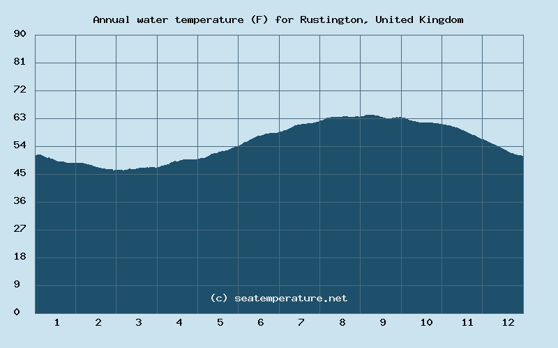 You can explore detailed data on how the water temperature in Rustington varies each month: