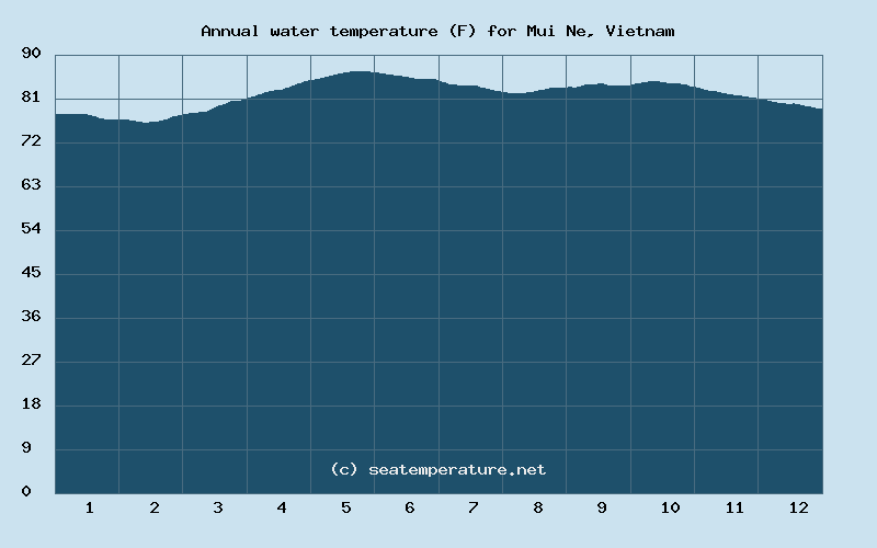 You can explore detailed data on how the water temperature in Mui Ne varies each month: